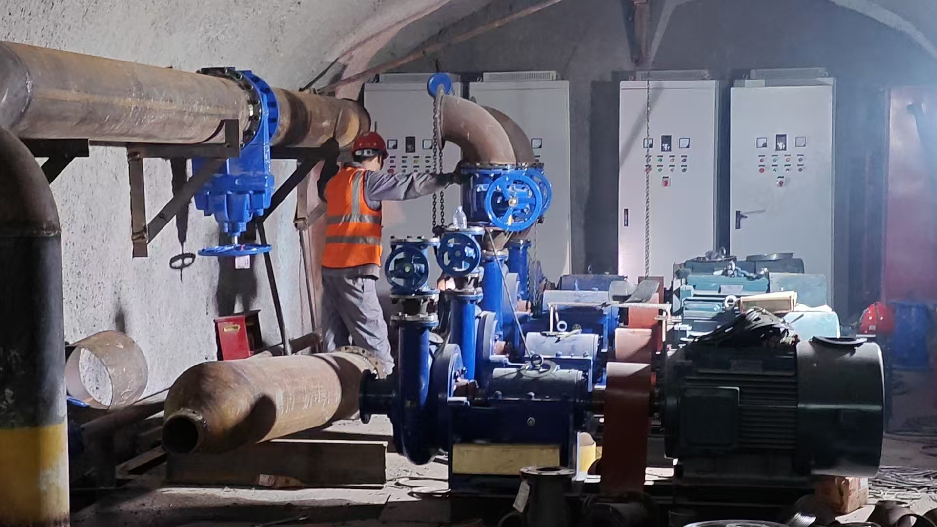 根據(jù)鐵路隧道的工程進(jìn)度,第三批主排水泵已進(jìn)場完畢,立即投入緊張的安裝工作。第三批主排水泵清水泵功率為90KW 4臺,污水泵功率為75KW 4臺,共計8臺,為不耽誤工程整體進(jìn)度,安裝工作設(shè)備進(jìn)場立即開始,預(yù)計將按期完成安裝工作,在端午節(jié)后開始調(diào)試。